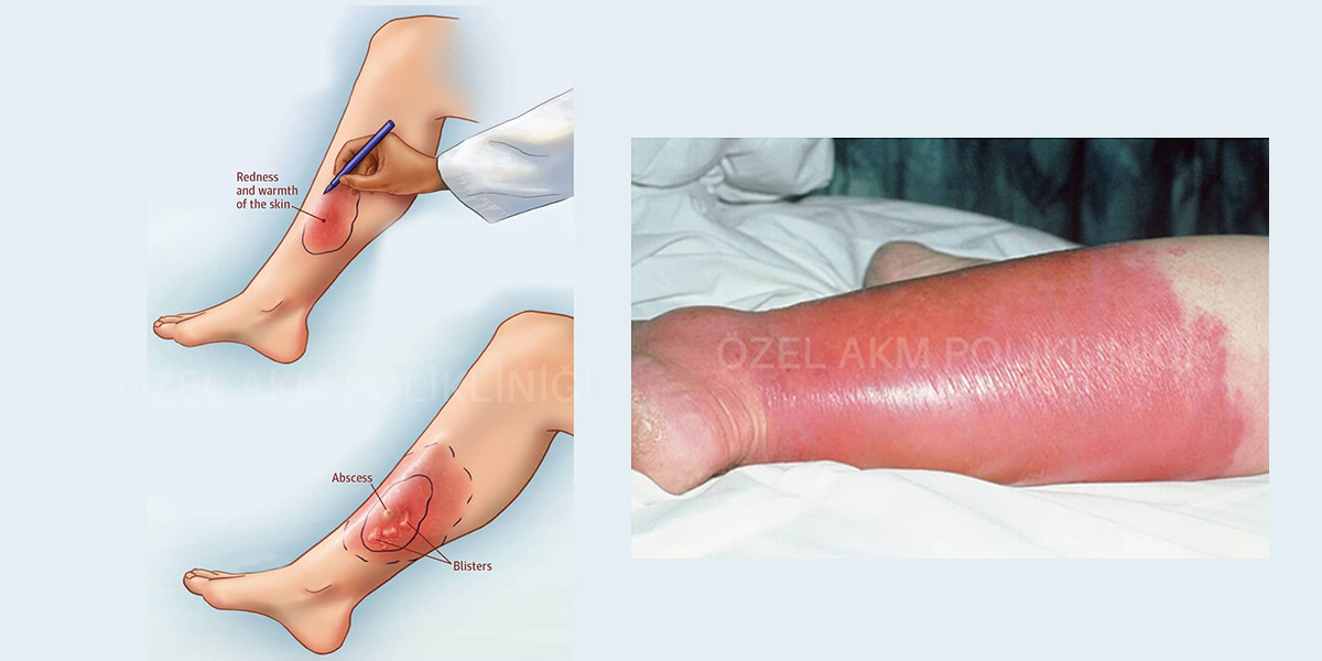 • Selülit, deride kızarıklık, şişlik, sıcaklık artışı ve ağrı ile karakterizedir. Ateş ve halsizlik sıklıkla eşlik eder. Tedavi edilmezse kızarıklık etrafa doğru yayılabilir. En sık bacaklarda, daha az sıklıkta kollar ve yüzde görülür.